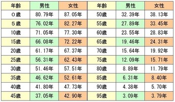 主な年齢の平均余命 厚生労働省「平成27年簡易生命表」